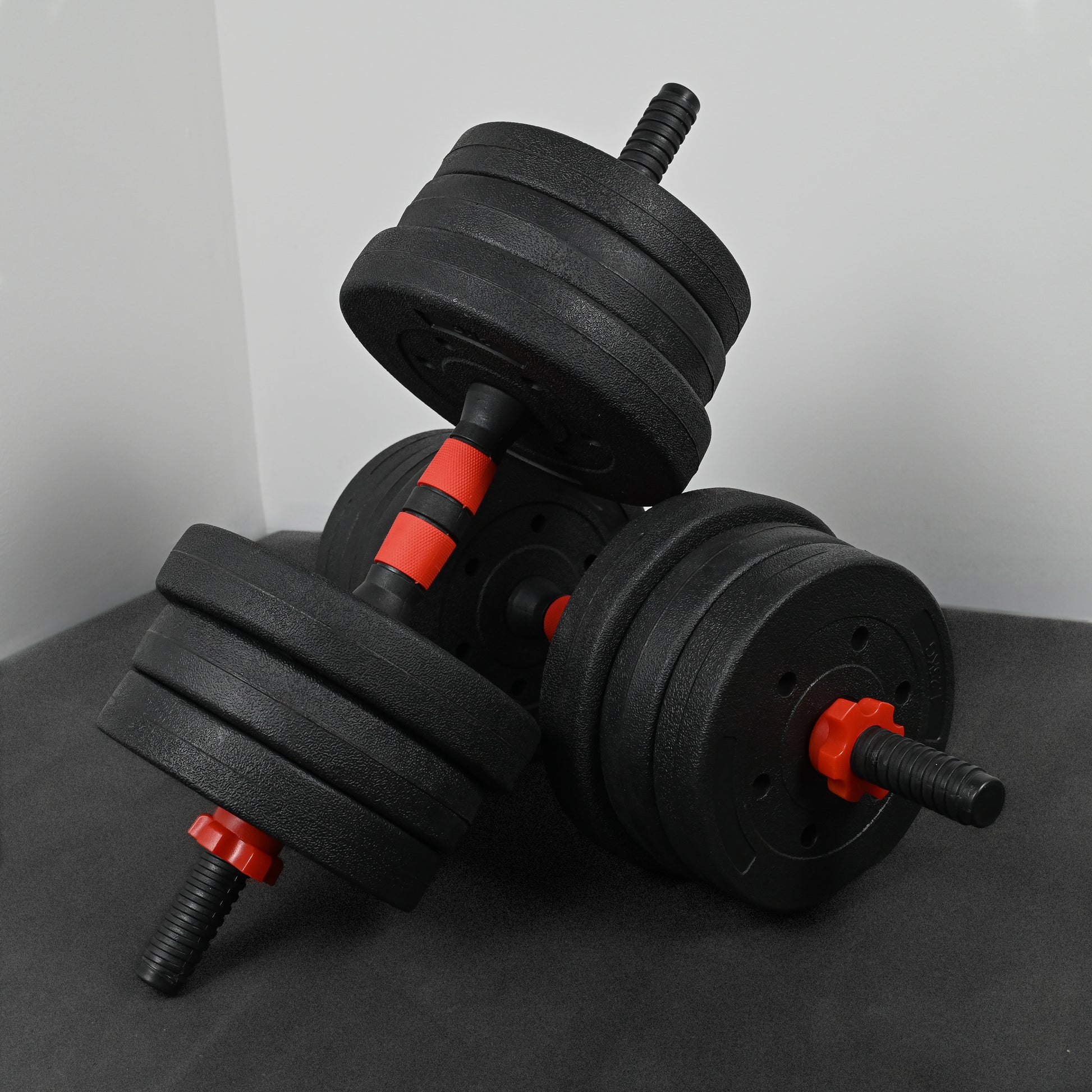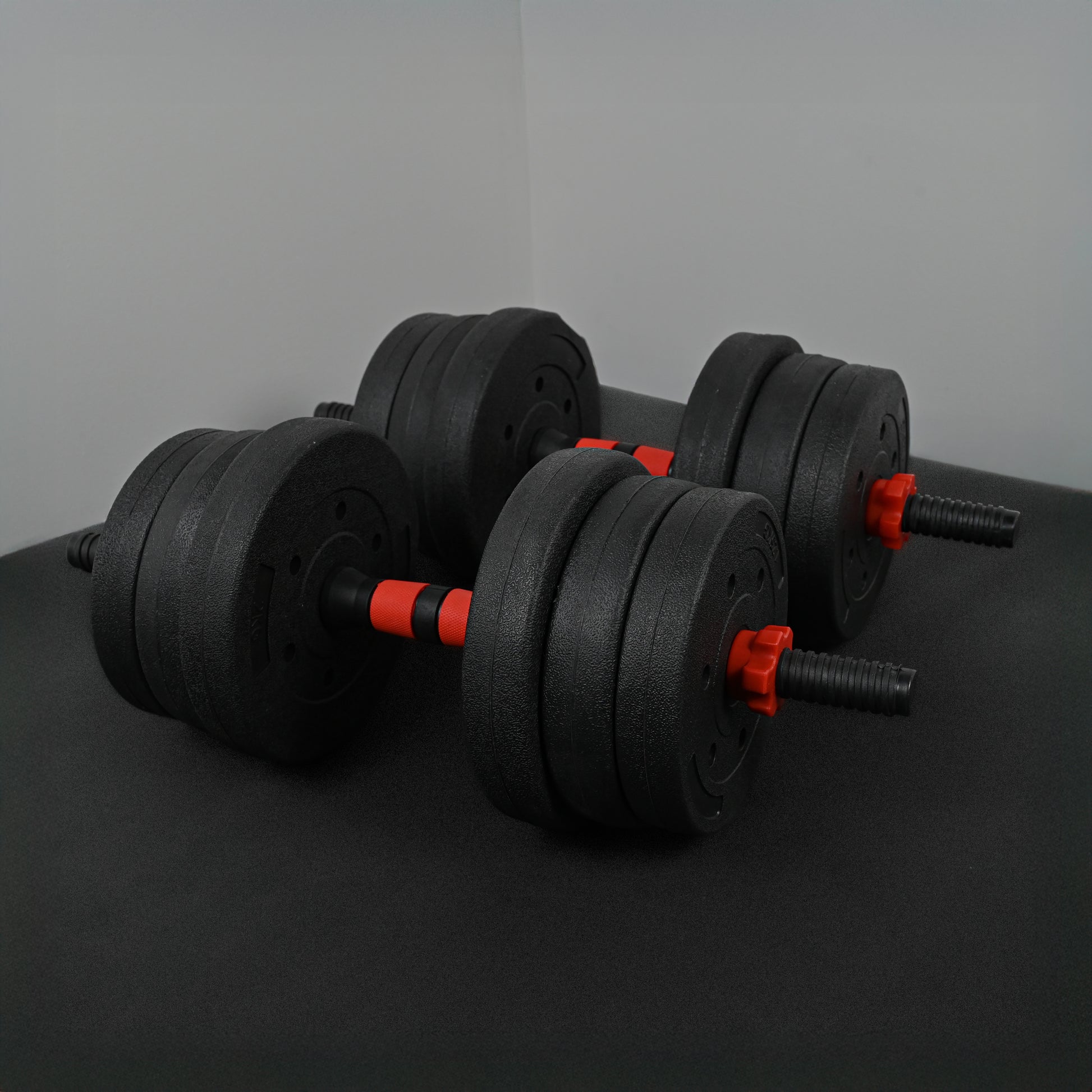 - 2× dumbbell bars with textured, non-slip handles
