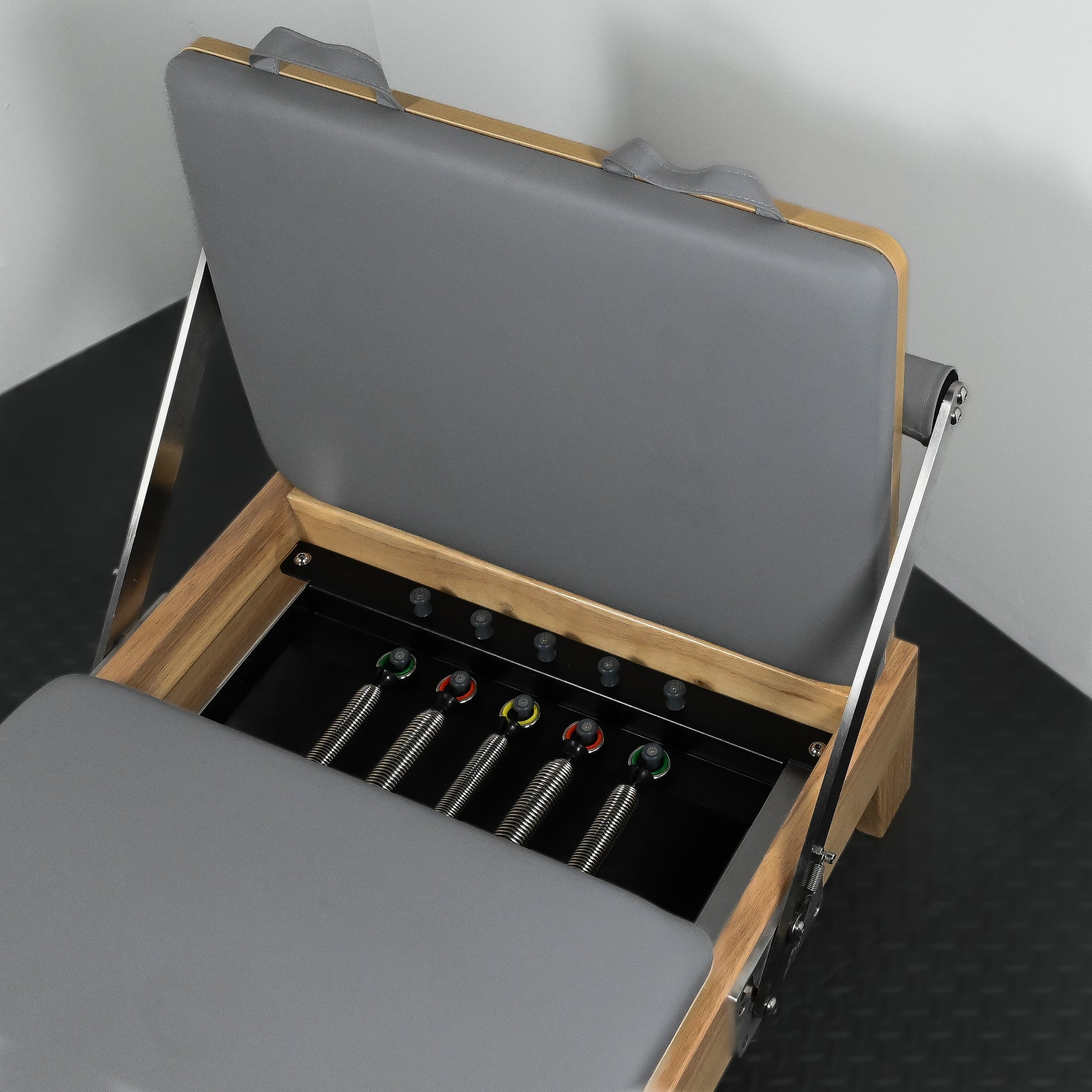 Built on a rigid solid oak frame for rock-steady alignment, the Oak Reformer glides on thickened stainless-steel rails with a quiet PU silent wheel system. High-performance German steel springs deliver ultra-smooth, consistent tension for controlled, repeatable reps—from gentle rehab to athletic power work. Premium high-density foam padding supports longer flows and high-volume classes, while stainless-steel hardware ensures durability and a clean, professional finish.