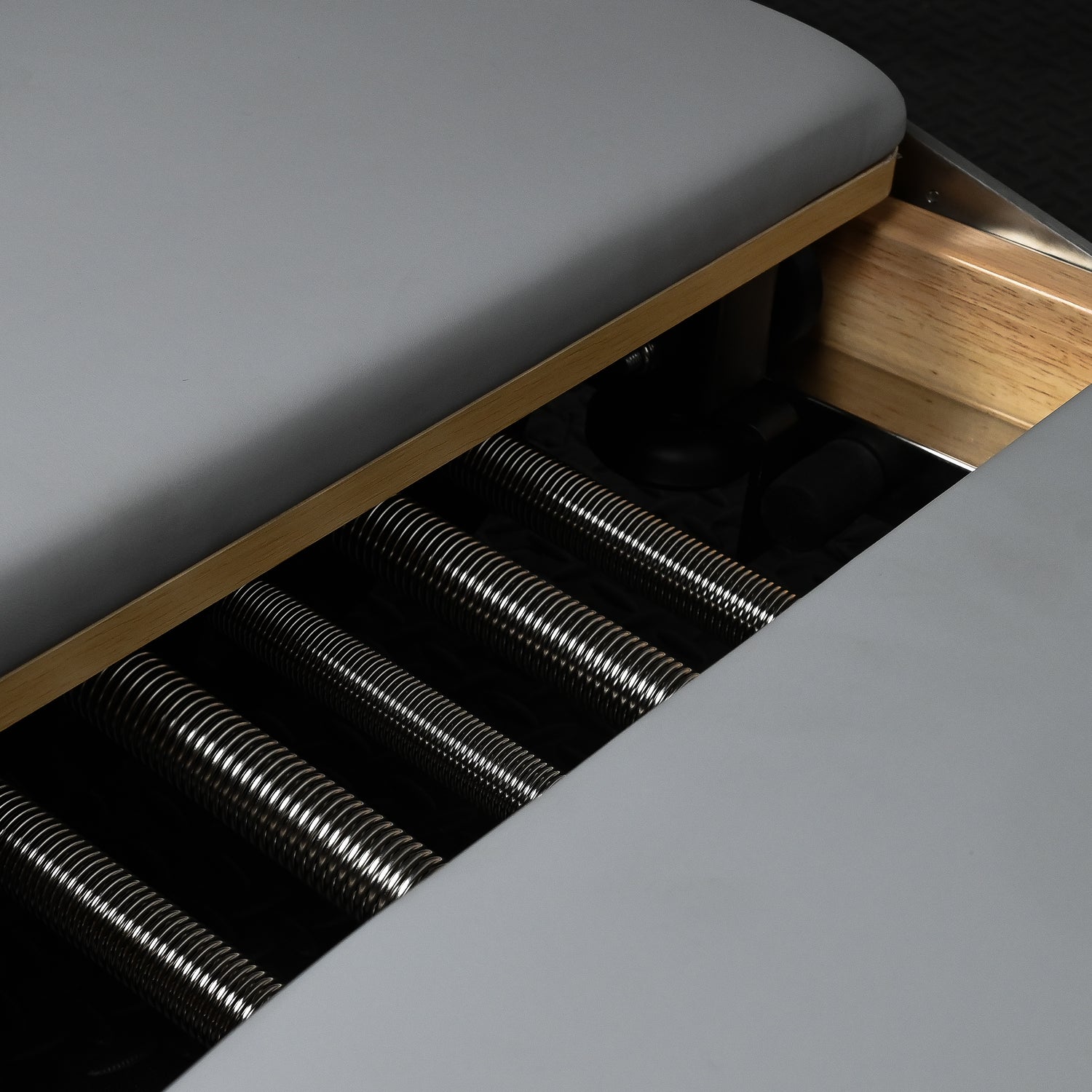 Designed with a slim, space-conscious footprint and a whisper-quiet wheel system, the Oak Reformer is easy to position in multi-use rooms. Allow comfortable clearance at the foot end for jump board work and at the head end for box-based exercises.