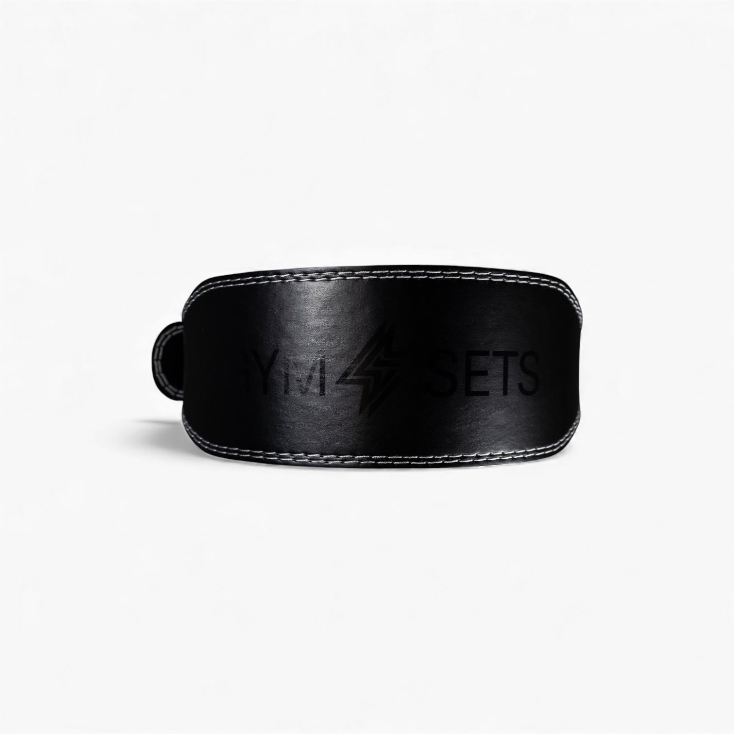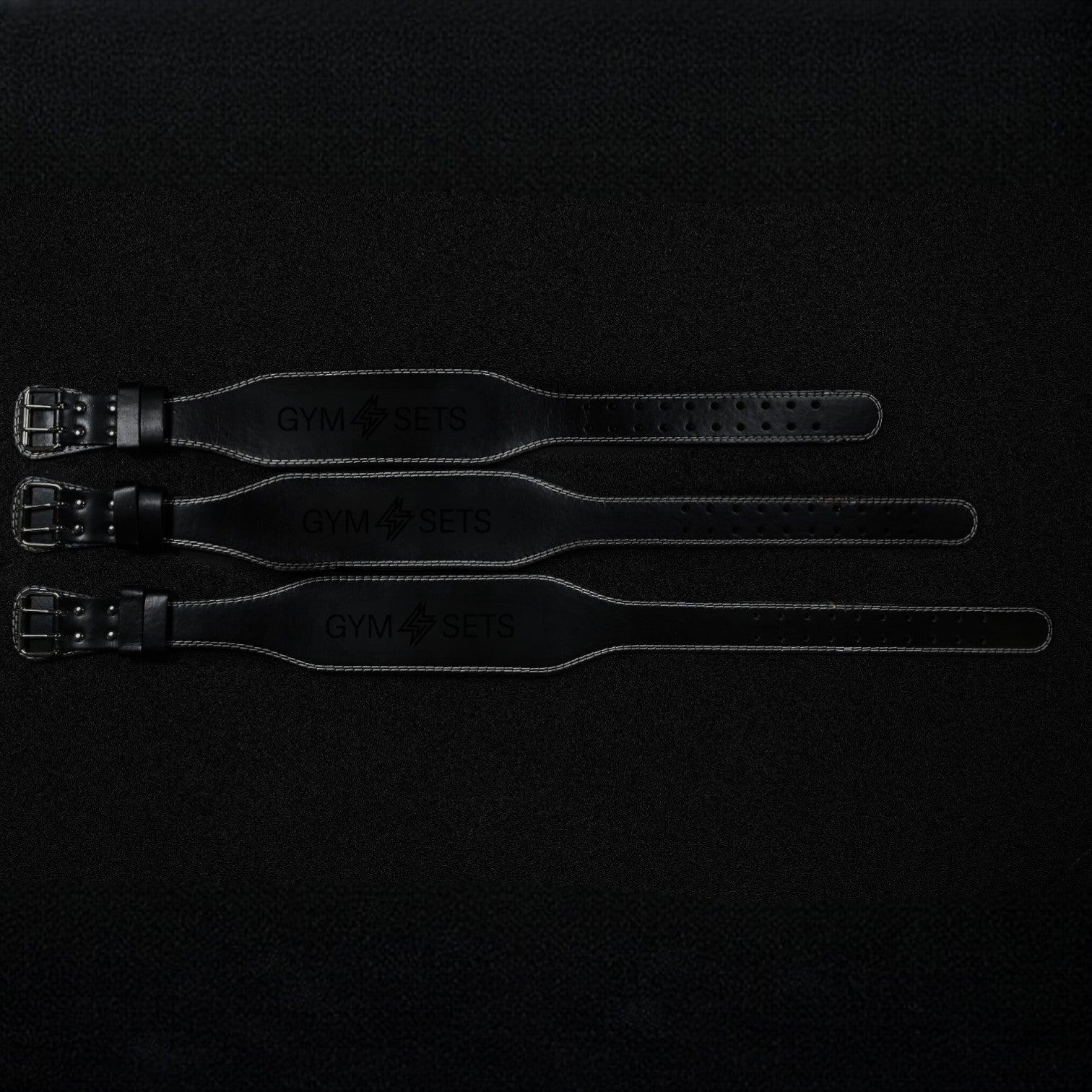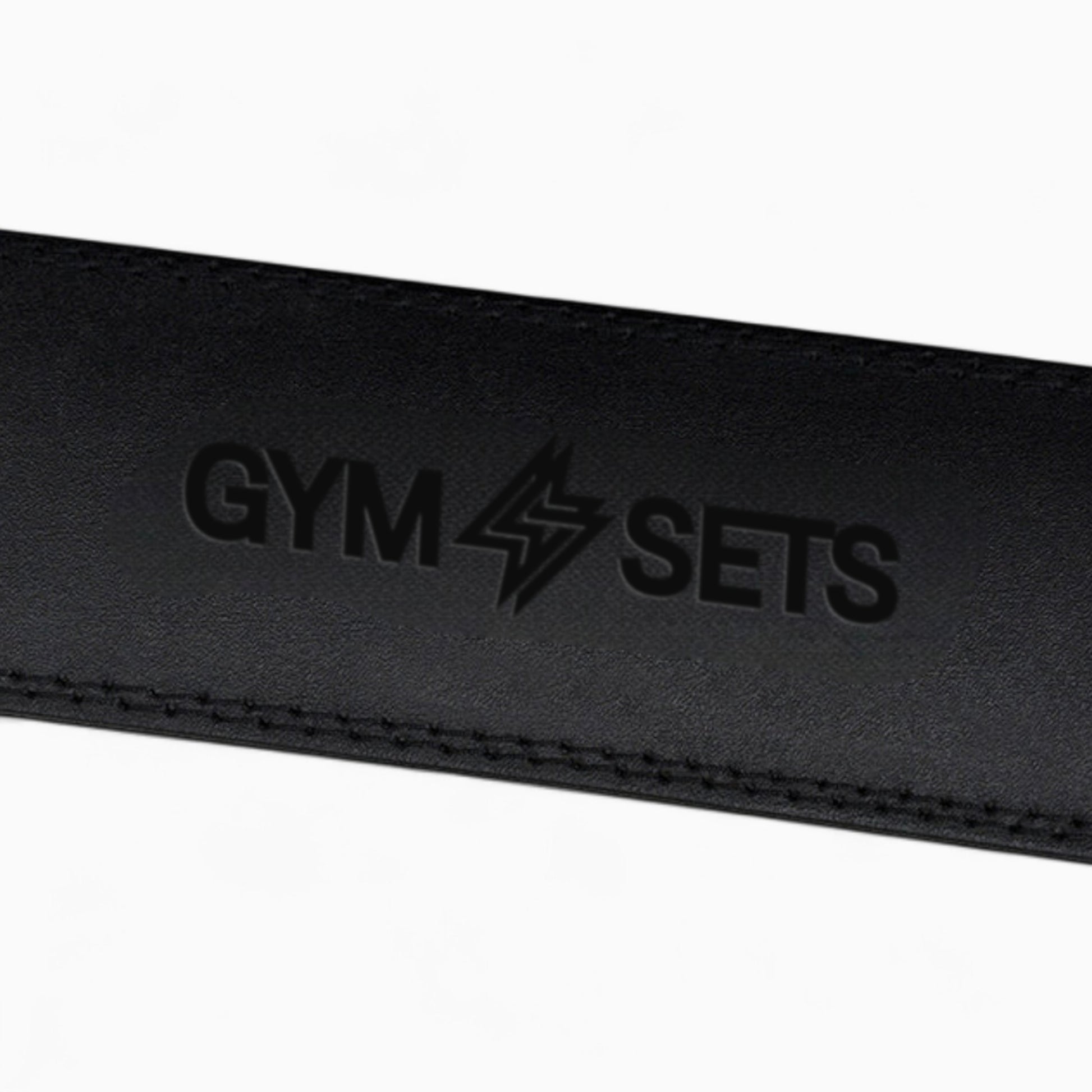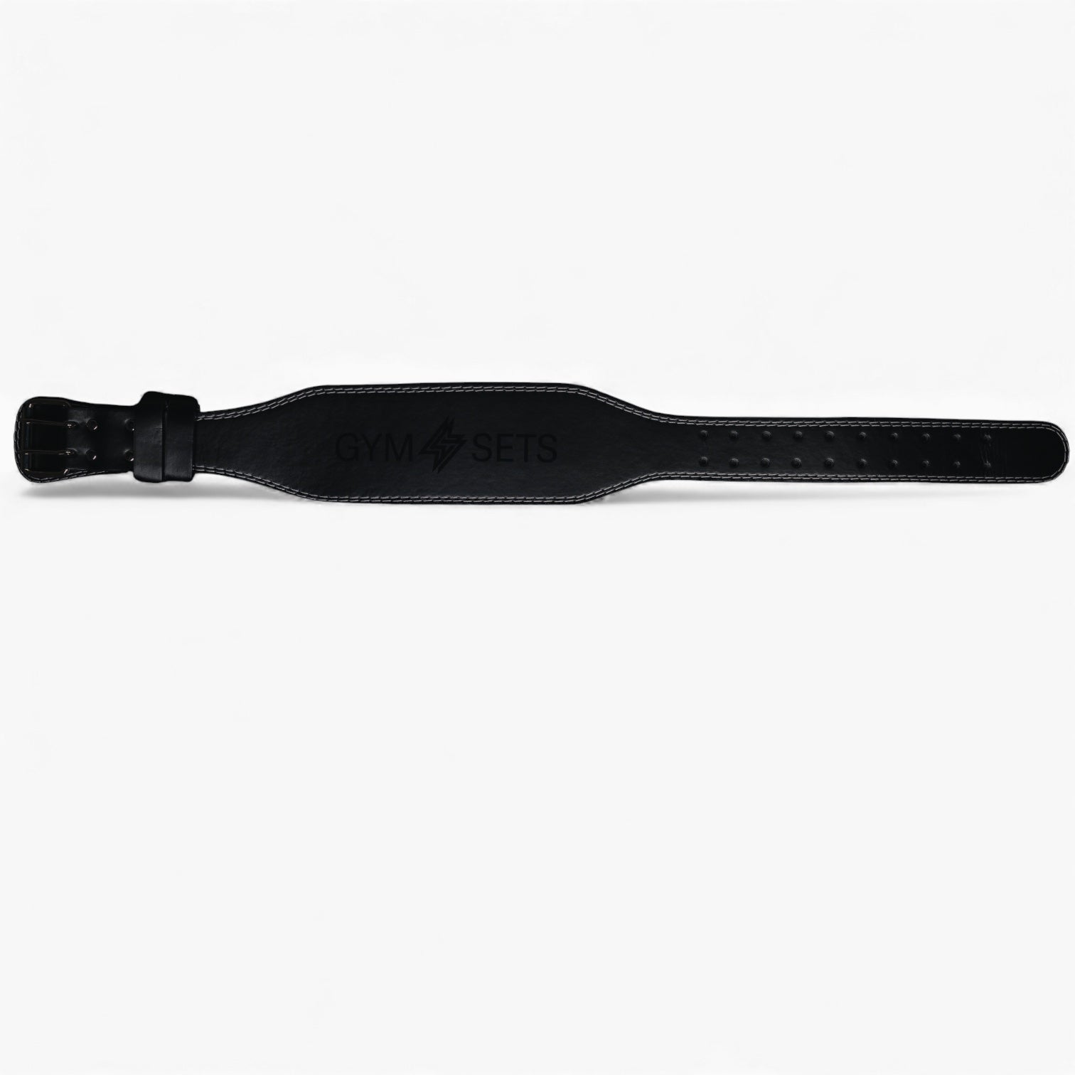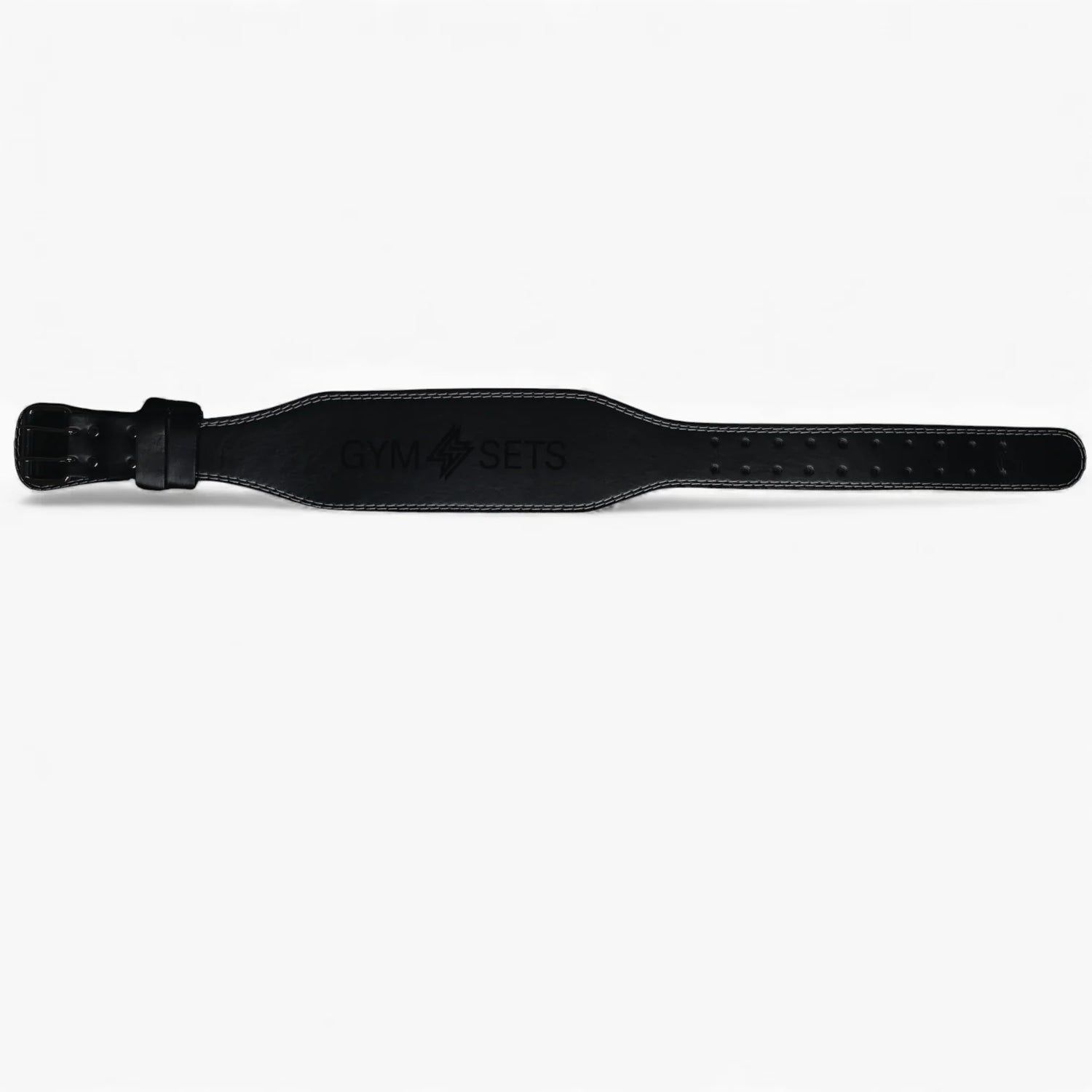 GymSets Weight Lifting Belt — 7 mm cowhide leather with suede inner, padded lumbar support (4" width), twin-prong steel roller buckle, reinforced rivets, and 10-hole micro-adjustment for secure, comfortable bracing on heavy lifts.